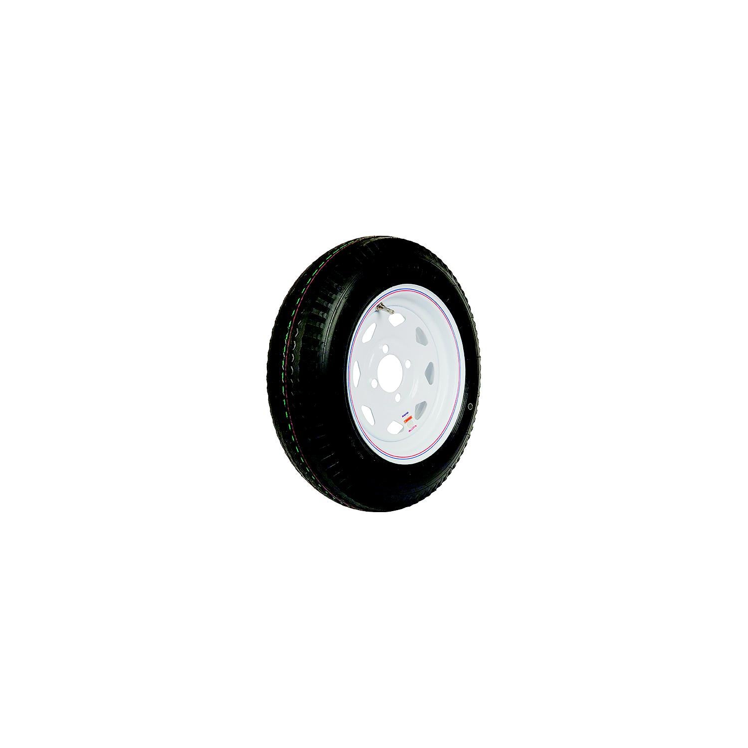 12" Bias Tire And Wheel Assembly, 480-12 B/4-Hole White w/Stripe