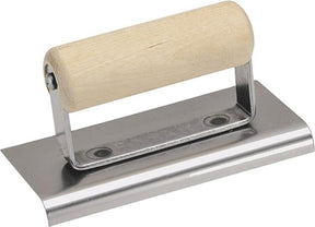 Comfortable wood handle and rust-resistant stainless steel for producing a radius at edge of concrete slab.