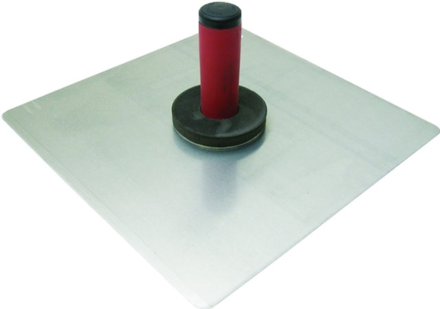 Made of heavy gauge hard-rolled aluminum; lightweight but durable. Edges have been smoothed and the corners rounded for convenience. 3-5/8 in flange with extended hub that is threaded for the handle. Handle and sponge rubber callus preventer included. Resilient DuraSoft handle provides a soft feel, reduces fatigue and offers excellent durability. Used for holding plaster during application.