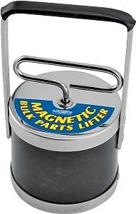 A low-cost time saver, transfer and pick up nails, screws, nuts or any small metal objects, then pull the handle to release the objects in the desired location. Smooth, uninterrupted sides allow for fast burrowing. Prevents injuries from sharp metal objects. Its heavy-duty canister is lightweight and features an easy-to-grip handle. Lifts up to 1 lb of 2-1/2 in nails.