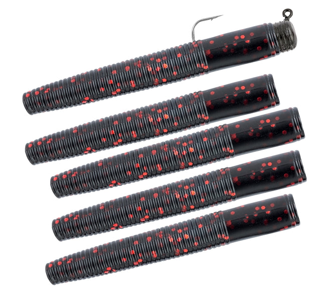 Matzuo America 5718-0525 Ned Style Rigs, 3 in Worm, 5-Hook, Black/Red Lure