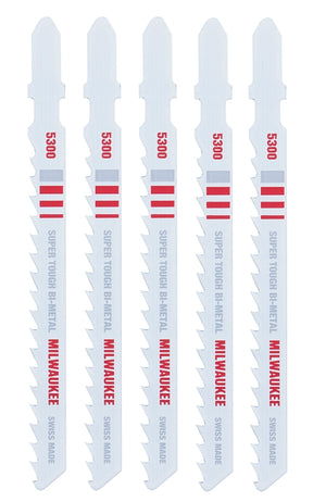 Milwaukee 48-42-5300 Jig Saw Blade, 9/32 in W, 4 in L, 6 TPI, Bi-Metal Cutting Edge, 5/PK