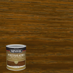 Minwax PolyShades combines stain and polyurethane in one simple step. Each coat provides rich color and lasting protection while enhancing the wood grain. This product will reduce finishing time compared with staining with one product and protecting with another. PolyShades stain and polyurethane also allows you to easily change the color of your currently stained or varnished wood without stripping. Over old varnish you can change the color without removing the old finish or hiding the grain. For additional protection, without adding color, add a coat of Minwax fast-drying polyurethane or Minwax wipe-on poly. Using a natural bristle brush, dip approximately an inch into the can, gently tapping it against the inside to remove any excess. Apply a very thin, even coat following the direction of the grain. Make sure to maintain a "Wet" edge. To minimize the brush marks and bubbles after staining, tip off the surface by holding the brush at a 45 degree angle and lightly run the bristles over the entire length of the wood. Let the first coat dry for 6 hours or more. Dry time may be extended due to high humidity, low temperature and inadequate ventilation or if the coat is applied too thick. Rub the surface lightly with fine steel wool. Remove all dust. Brush on a second thin coat following directions above. To deepen the color, apply a third coat. To help ensure uniform acceptance of stain color and beautiful results, pretreat new or raw wood with oil-based Minwax pre-stain wood conditioner, following label directions.