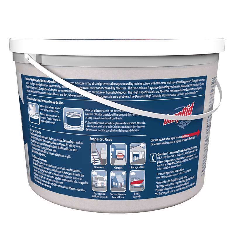 The DampRid hi-capacity Lavender Vanilla moisture absorber is the fast, easy and effective way to control moisture in large spaces over extended periods of time. It's incredibly easy to use just remove the lid to activate the crystals and place it on a flat surface. And when the crystals have completely dissolved you can just toss it in the trash.