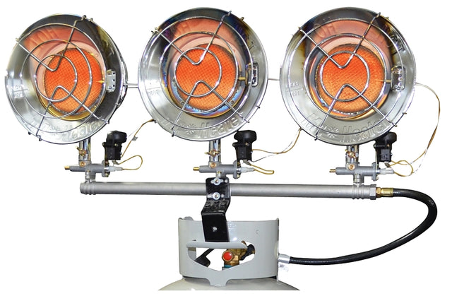 Mr. Heater F242915/F273900 Triple Tank Top Heater, 20 lb Fuel Tank, Propane, 10000 to 45000 Btu, Silver