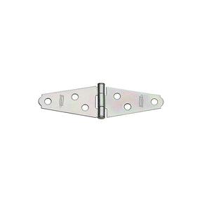 National Hardware Strap Hinge, 18 lb Weight, Number of Holes: 6, Pin Type: Fixed, Door Leaf Height: 1.87 in, Door Leaf Length: 1.87 in, Leaf Thickness: 0.05 in, Frame Leaf Width: 1-1/16 in, Pin Diameter: 0.119 in, Wall Mounting, Steel, Zinc, Dimensions: 3-3/4 in