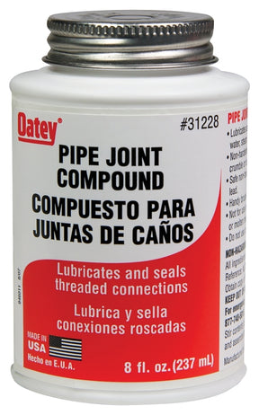 Oatey pipe joint compound is a firm, smooth sealing compound formulated for most metal threads to create tight joints on lines carrying water, steam or air.