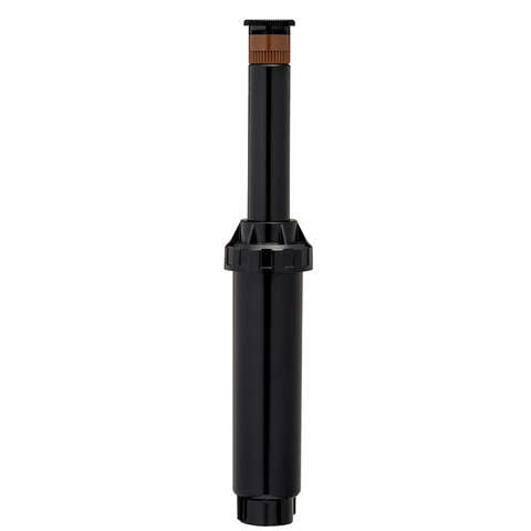 The spring-loaded pop-up sprinkler head with quarter pattern spray nozzle, with its standard plastic cap and long lasting, durable construction, offers convenience, ease and value. This medium area sprinkler head includes a plastic nozzle with an adjustment screw for easy flow and radius adjustment. A drop-in filter helps prevent a plugged nozzle. A stainless steel retraction spring and a wiper seal to keep out sand and grit.