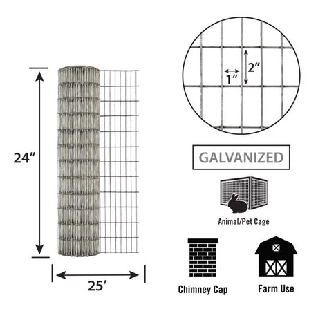 IronRidge 24 in. H X 25 ft. L Galvanized Steel Welded 1 in. X 1 in. in.