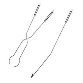 Let's end the search for improvising tools to tend the fire. The angled poker and log grabber let you stoke and add logs inside your fire pit without even leaving your chair. We mean it when we say these are the last fire pit tools you'll ever need. The unique angle of the log grabber and poker allows you to adjust and add logs to your fire without being directly over the flames. The log grabber features reinforced ends so you can grab the biggest log in the pile as well as the smallest. Feel-free to tend your flame without even leaving your seat. Made with durable 304 stainless steel, fire pit tools are built to last a lifetime of roaring flames. The convenient loops on their handle makes them easy to hang for convenient storage.