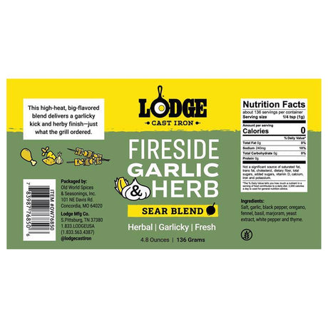 Lodge Fireside Garlic and Herb Sear Blend BBQ Seasoning 4.8 oz