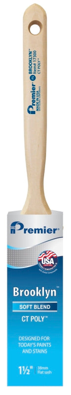 Premier Brooklyn Paint Brush, Flat Sash Brush, 2-1/2 in Bristle Length, Polyester Bristle, Stainless Steel Ferrule, Hardwood Handle, 1-1/2 in Width, 1/2 in Thickness