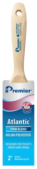 Premier Atlantic 17351 Paint Brush, 2 in W, Beavertail Varnish Brush, 2-11/16 in L Bristle, Nylon/Polyester Bristle