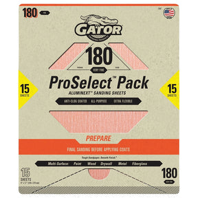 Gator Sanding Sheet, 11 in Length, 9 in Width, 180 Grit, Fine Grit Grade, Aluminum Oxide Abrasive