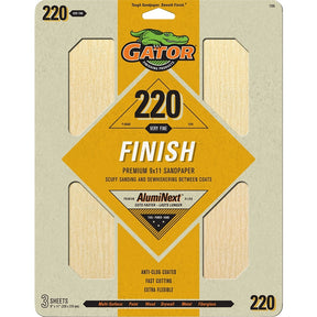 Gator 7266 Sanding Sheet, 9 in W, 11 in L, 220 Grit, Extra Fine, Aluminum Oxide Abrasive