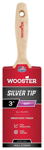 Semi-professional quality at a great value! Silver tip is made with a blend of white and silver Wooster CT polyester that virtually eliminates brushmarks. Thin, soft, flexible ends provide exceptional leveling and smoothing. Ideal for latex paints, applying enamels to metal or polyurethanes on wood. Birch hardwood handle for a professional touch.