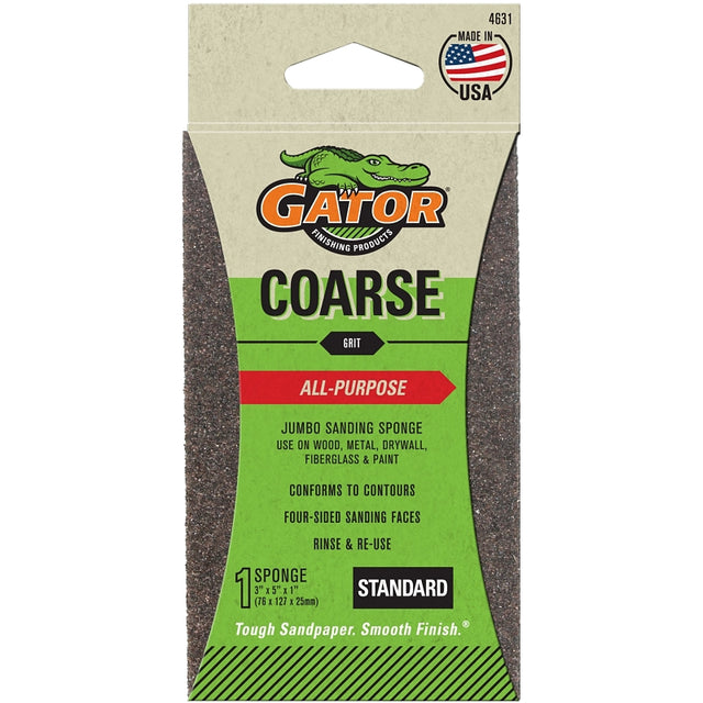 Gator 4631 Premium Sanding Sponge, 3 in L, 5 in W, 60 Grit, Coarse, Aluminum Oxide Abrasive