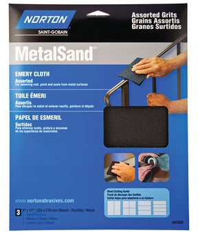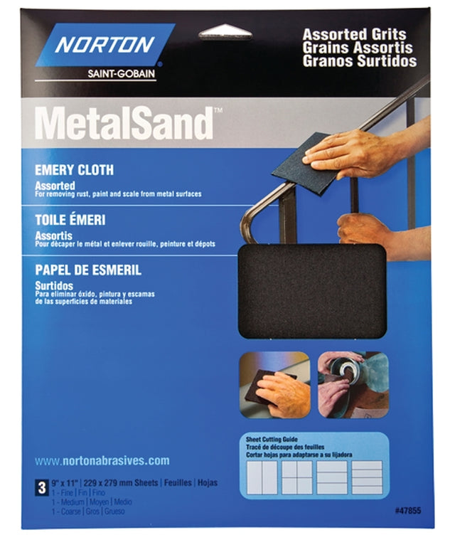 Norton MetalSand 07660747855 Sanding Sheet, 11 in L, 9 in W, Emery Abrasive, Cloth Backing