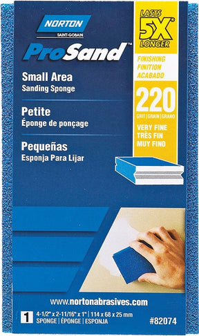Norton ProSand 82074 Sanding Sponge, 4-1/2 in L, 2-11/16 in W, 220 Grit, Extra Fine, Aluminum Oxide Abrasive