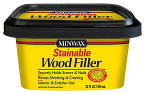 Minwax stainable wood filler is ideal for repairing cracks, small gouges, nail holes, knot holes and other defects in all types of unfinished indoor and outdoor wood surfaces.