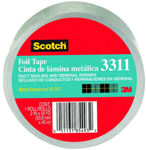 Scotch Foil tape 3311-10A measuring 2.0 in x 10 yd, is specifically designed to help maintain duct work integrity and optimize HVAC performance. Conformable tape with silicone-treated liner that unwinds easily to minimize errors and wasted tape. It is flexible and easy to apply in tight spaces, making it the ideal tape for duct repairs. The soft aluminum foil also conforms to irregular surfaces and provides a reliable vapor barrier.