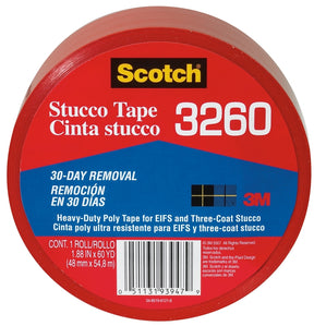 Used in traditional three-coat, hard-coat and one-coat stucco or EIFS processes. Ideal for masking durable surfaces when applying stucco, plaster and concrete. Tape is UV-resistant, conformable and has a waterproof poly backing, tears easily.