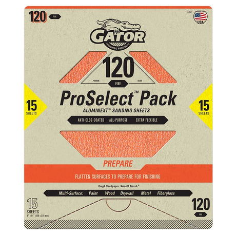 Gator 7282 Sanding Sheet, 11 in L, 9 in W, Fine, 120 Grit, Aluminum Oxide Abrasive