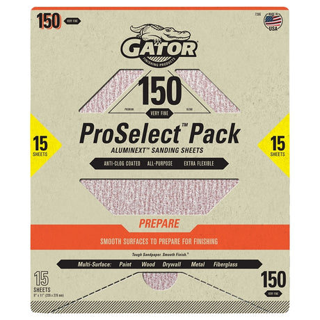 Gator 7286 Sanding Sheet, 11 in L, 9 in W, Very Fine, 150 Grit, Aluminum Oxide Abrasive