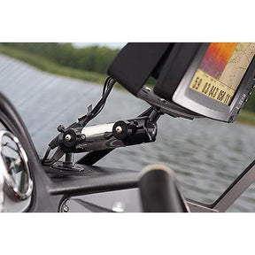 These ball and socket mounts will not come down or drop like other brands and will allow full swivel of 360° at either the top or the bottom. They are ideal for mounting even the heaviest fish finders, radar screens, speakers, multi-function displays, or any other accessory in a limited space or that needs to be raised. In addition, due to the unique double ball configuration, a broad range of possible positions is available. Simply loosen the locking ball knob to adjust or remove the unit completely. Stainless steel and hard coat anodized aluminum construction. Can be modified to mount GoPro® cameras.