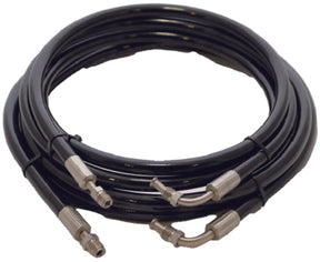 The hose kit contains two hoses - high pressure and low pressure - with fittings. The low-pressure hose is 12 longer to allow for uninterrupted travel when connected to the cylinder actuator. (One hose kit is needed per system.)
