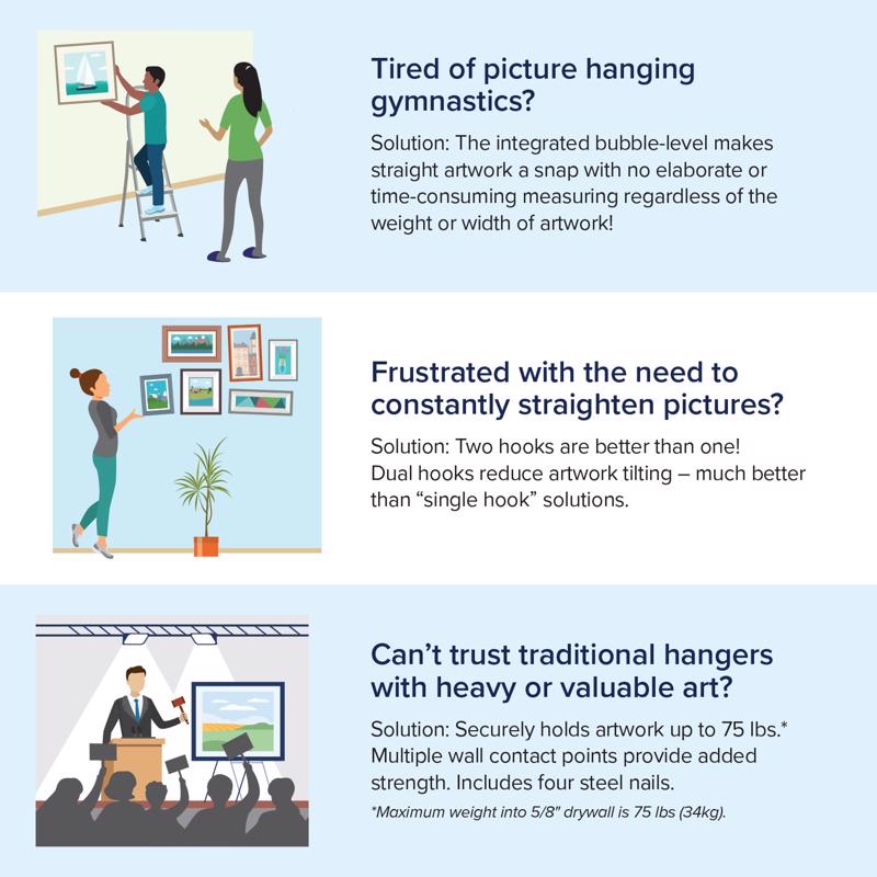 Balanced Hanger Always Level Metallic Silver Heavy Duty Mirror/Picture Hanging Kit 75 lb 1 pk