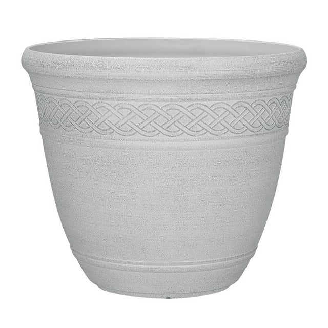 L&G 14 in. H X 16 in. D Polyresin Stone Planter White