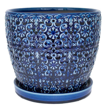 Trendspot Mediterranean 8.5 in. H X 10 in. W X 10 in. D X 10 in. D Ceramic Planter Blue