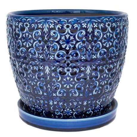 Trendspot Mediterranean 10.16 in. H X 11.9 in. W X 11.9 in. D X 12 in. D Ceramic Planter Blue
