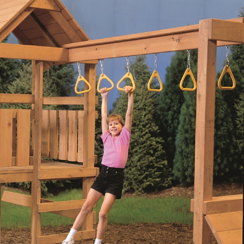 PS 7744 Monkey Ring Kit gives the little climber in your life something exciting to conquer. This classic jungle gym addition helps challenge your child to overcome obstacles while helping build upper body strength, coordination, and confidence. The teardrop design of the monkey rings is specifically designed for a child’s hand to help provide a sure grip as they make their way across. All the components in this kit are proudly made in the USA and comes with a 10 year warranty.