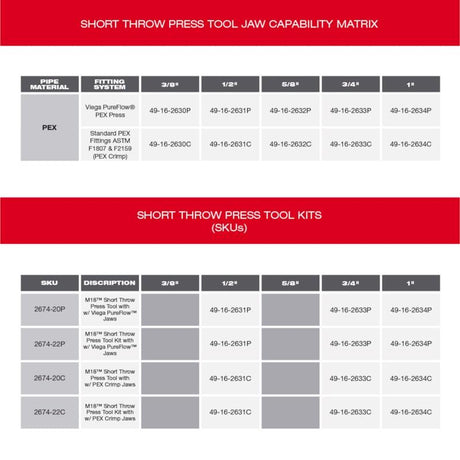 Milwaukee M18 Force Logic w/ 3 PEX Crimp Jaws 1 in. Press Tool Kit Red