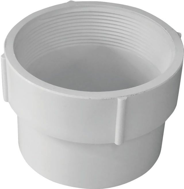 Canplas Pipe Adapter, Nominal Size: 6 in, FNPT x Hub Connection, PVC, White
