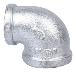 This galvanized 90 degree reducing elbow is used to change direction in piping. It for use with water or steam and meets ANSI standards.