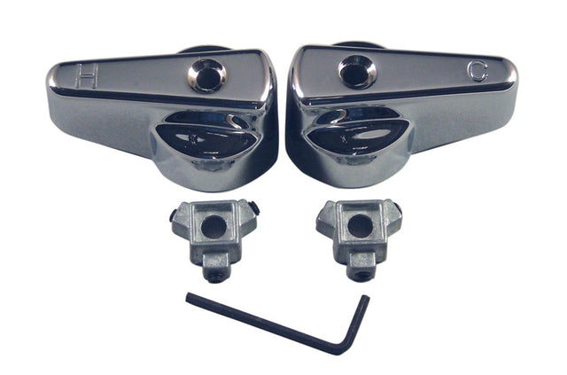 If your faucet handles have seen better days, you can bring your faucet back to life by replacing the handles. And, if you aren't sure what kind of faucet you have, universal fit handles are the answer. These Ace Large Canopy Lever Handles will work on any faucet. It features a metal construction that provides strength and durability. The handle includes adapters, spacers and wrench.