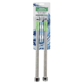 Water Heater Installation Kit. 15",Dual, Flexible 3/4" female iron pipe thread union for Gas or Electric water heaters. One end fits directly on to a factory installed 3/4"male pipe thread water connection nipple.
