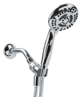 This 5 function handheld shower includes a 60" hose and a shower arm mount. It features a stylish plated face and rub clean nozzles that allow for easy cleaning. It is Watersense certified with a water saving 1.8 gpm flow rate that doesn't comprise your