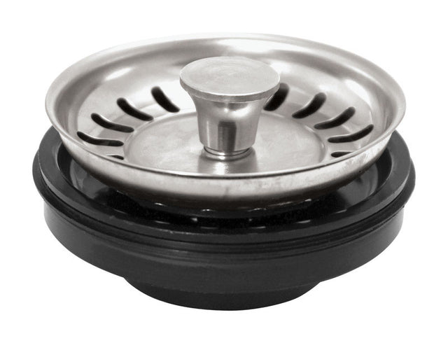 Drop in basket strainer and stopper for the garbage disposal. No tools needed, just drops into opening. Perfect single bowl sinks with disposal.