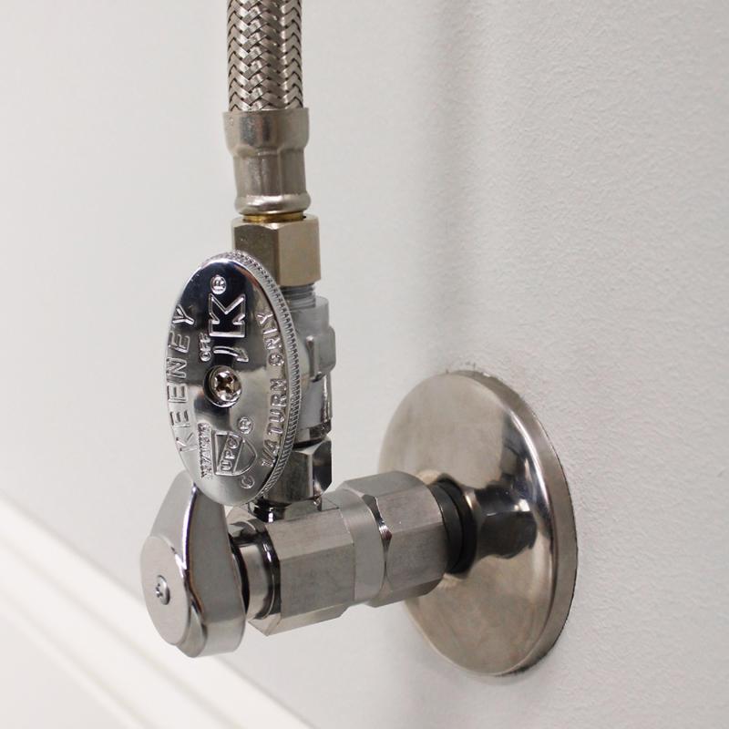 This Plumb Pak quarter turn angle shut-off valve is tagged as lead-free, making it safe to use with potable water systems. It comes with a chrome plated finish that doesn't wear off easily. This Repair Valve features a 3/8 in. FPT Swivel connection and a 3/8 in. OD connection.