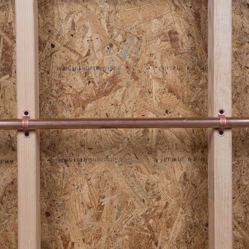 Oatey Copper Tube Straps secure copper tube size (CTS) copper, PEX or CPVC water lines against rigid surfaces.