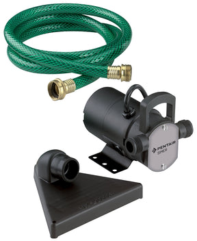 Non-submersible, multi-purpose pump designed for emergency dewatering, draining aquariums, waterbeds and clogged sinks. Pumps up to 350 gph. Pumps down to 1/8 in. Corrosion-resistant compact construction maximizes pump life. Self-priming at 6 ft vertically, pump will push water 40 ft high. Easy to use. Includes 6 ft power cord, 6 ft garden hose and suction attachment. CSA certified.