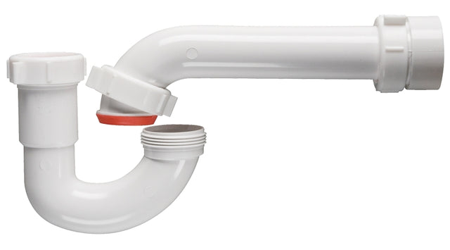 White PVC P Trap with 1-1/2 in inlet and outlet. Compression or solvent weld connection using supplied marvel connector to Schedule 40.