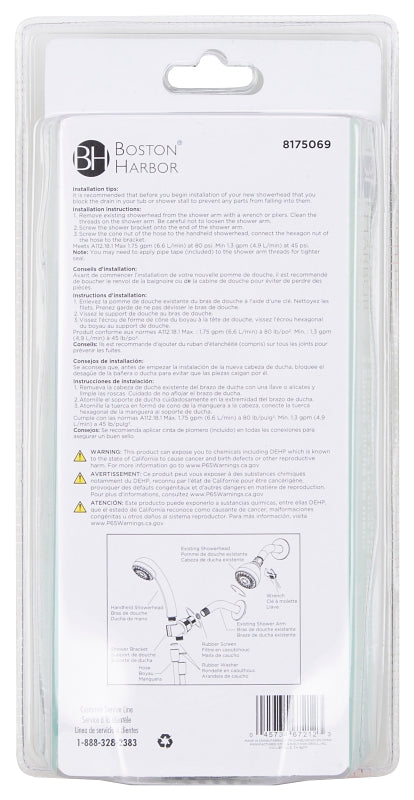 Boston Harbor DS3068CP Hand-Held Shower Head, 1.75 (6.6) 80 gpm (L/MIN) psi, 1/2-14 NPT Connection, Threaded, PVC is backordered and will ship as soon as it is back in stock.