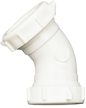 Plumb Pak Drain Pipe Elbow, Nominal Size: 1-1/2 in, Angle: 45 deg, PVC, White, Suitable for: Drainage System, Includes: Reducing Washer