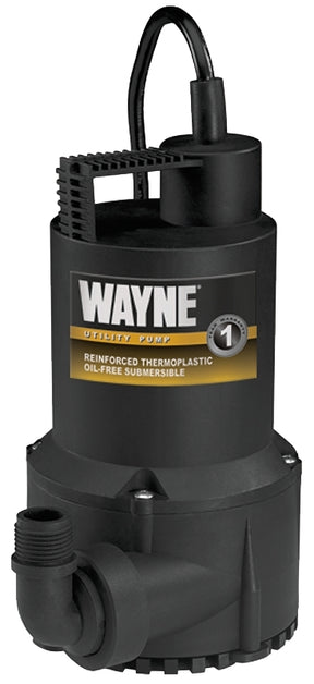 Wayne RUP160 Portable Submersible Utility Pump, 1-Phase, 2.5 A, 120 V, 0.166 hp, 1-1/4 in Outlet, 3100 gph