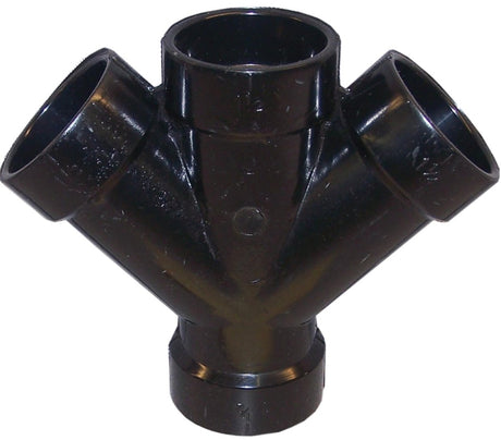 Canplas 102351BC Double Pipe Wye, 1-1/2 in, Hub, ABS, Black